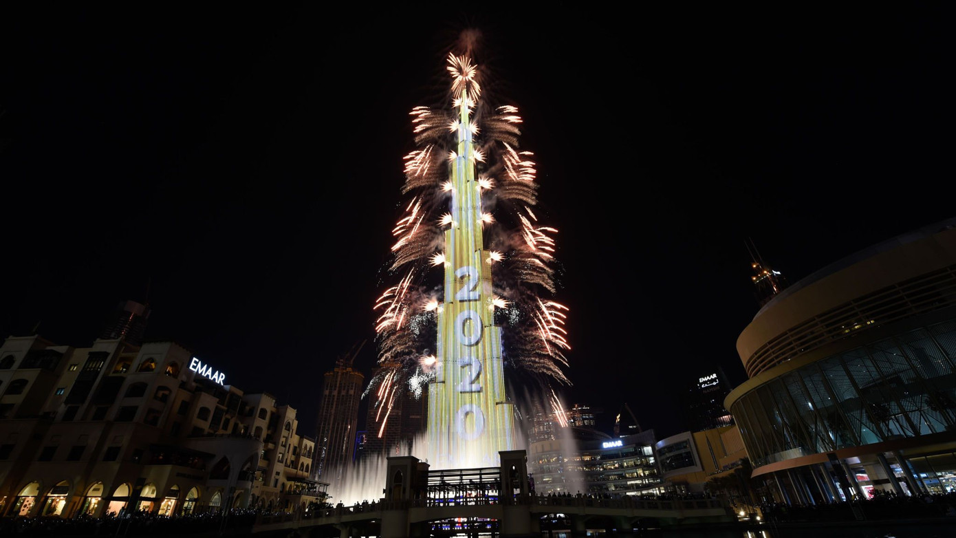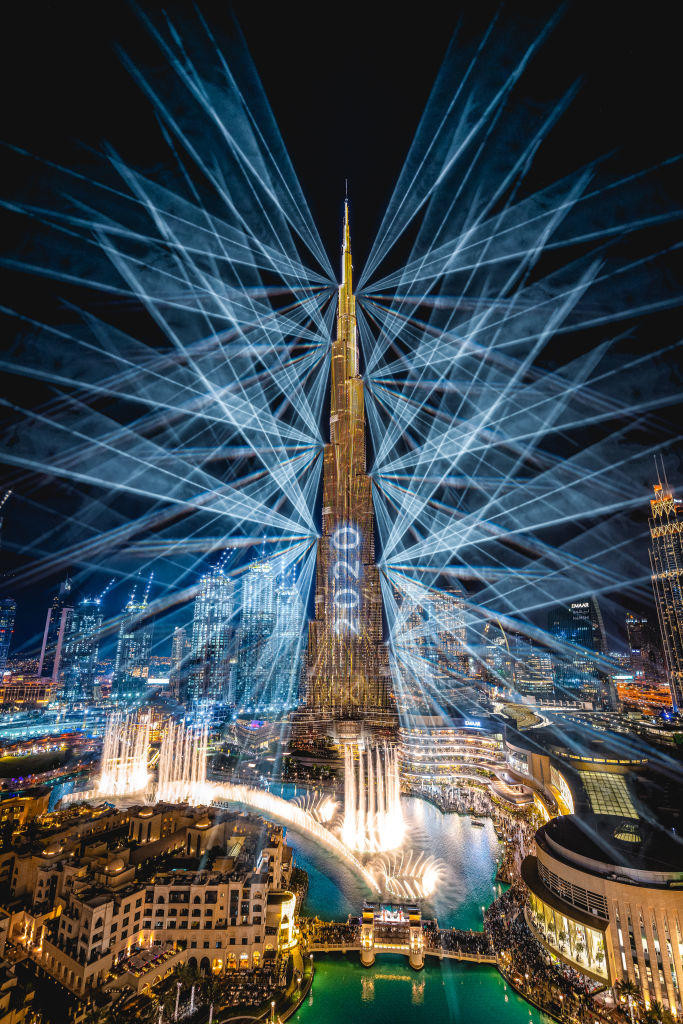Như thường lệ, Dubai tiếp tục gây ấn tượng bằng màn pháo hoa dọc thân tòa tháp cao nhất thế giới Burj Khalifa. Ảnh: EPA