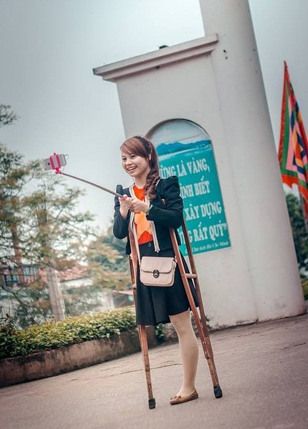 Bức ảnh cô gái khuyết tật tươi cười rạng rỡ khi chuẩn bị chụp ảnh selfie (ảnh tự sướng) đang được nhiều dân mạng chia sẻ. Hầu hết cư dân mạng đều ấn tượng mạnh trước sự tự tin, yêu đời của cô gái trong ảnh.