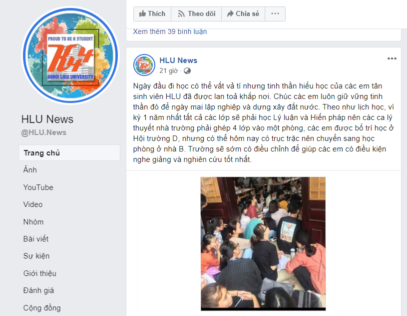 Mới đây, trên fanpage HLU News và nhiều diễn đàn mạng xã hội đã đăng tải chia sẻ về hình ảnh chụp khung cảnh lớp học quá tải.
