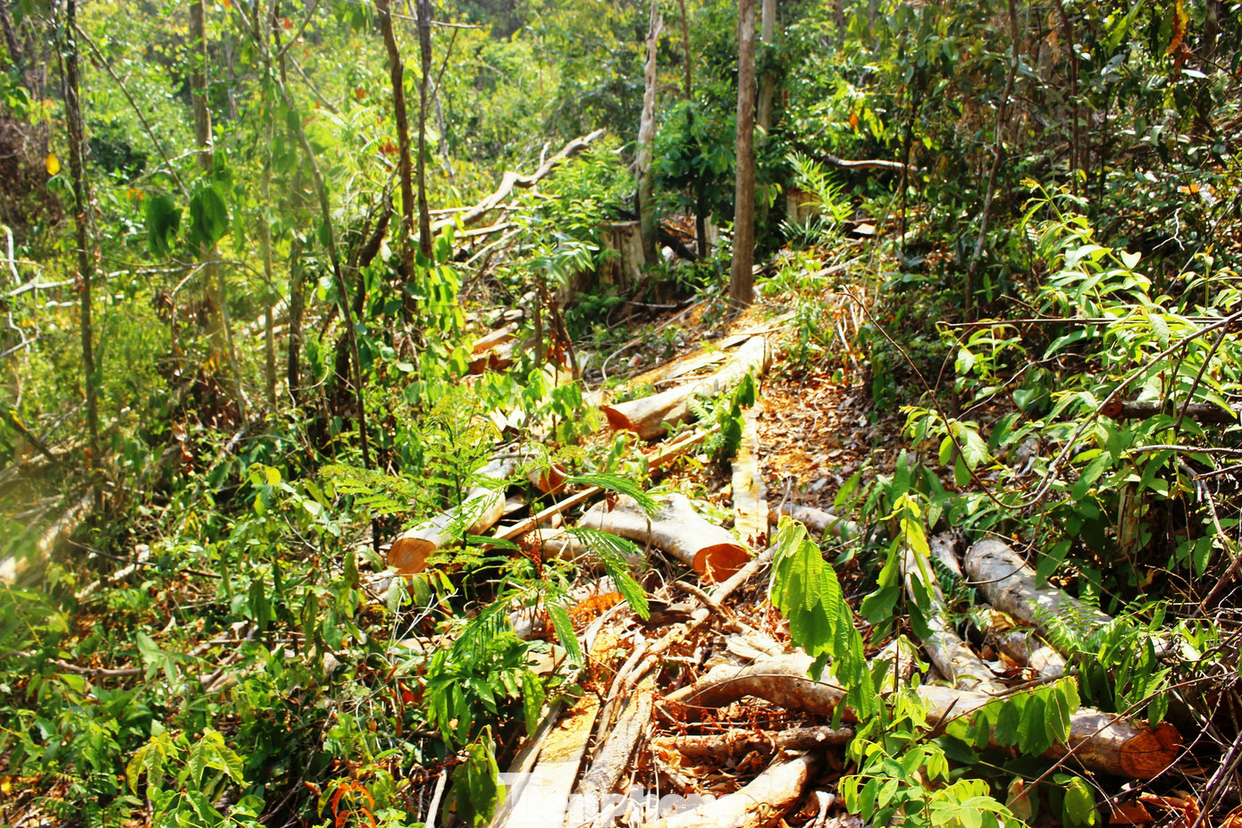 Cây rừng bị đốn hạ, xẻ ngay tại chỗ