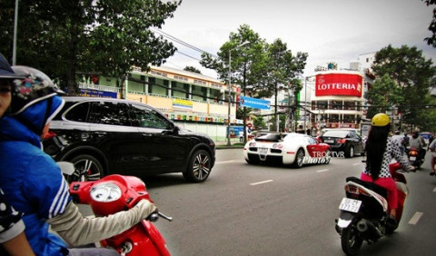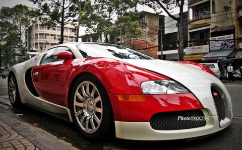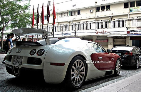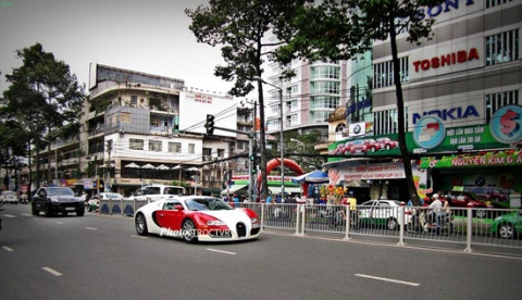 Nhưng có lẽ sau khi … nóng mắt với sự tỏa sáng liên tục của siêu bò Lamborghini Aventador làm xôn xao dư luận, chủ nhân của chiếc Bugatti Veyron màu đỏ trắng đã quyết định mang siêu xe của mình ra đường khoe sắc.