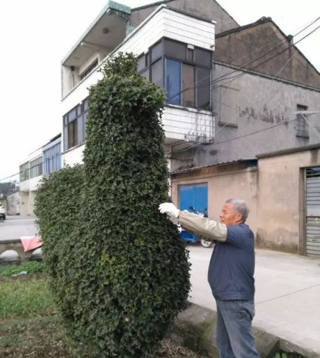 Nhờ sự chăm chút của ông Wang, bụi cây nhỏ giờ đã cao tới 2,5m và có hình dáng một con gà trống. Trước đây, cứ khoảng 2 – 3 lần/năm, ông lại kéo bụi cây của mình ra đường và tỉa tót để đảm bảo bụi cây luôn giữ được hình gà trống.
