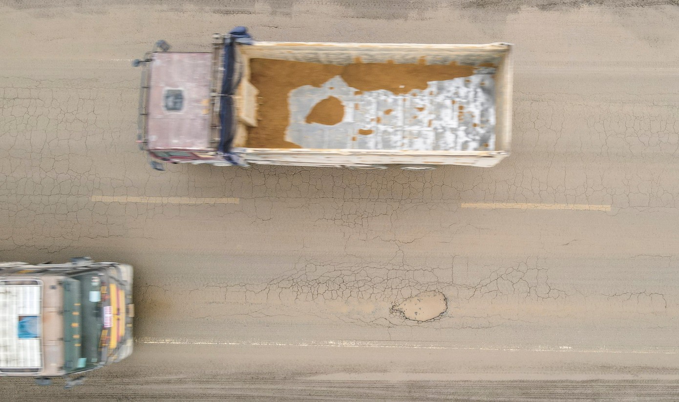 Theo người dân địa phương, mỗi ngày có hàng trăm lượt xe tải, xe ben. Mỗi lần xe đi qua, người dân lại nơm nớp lo sợ. Xe chạy liên tục khiến mặt đường lồi lõm, nứt gãy, xuống cấp nhanh chóng.