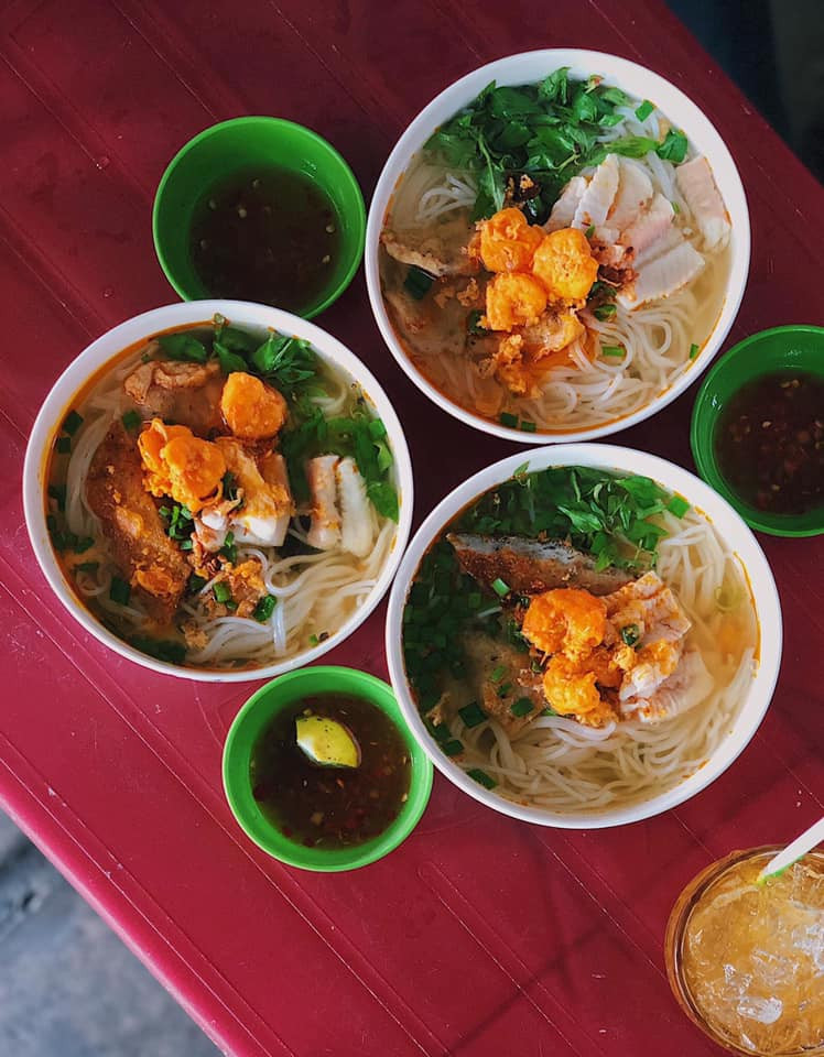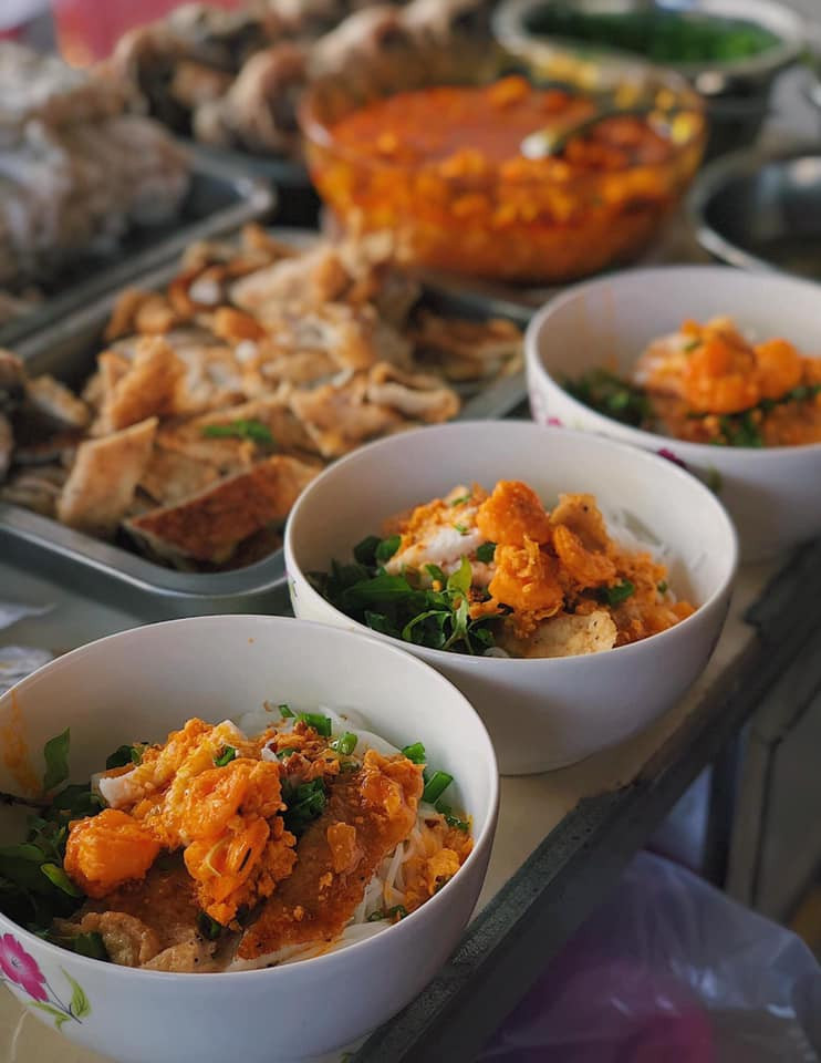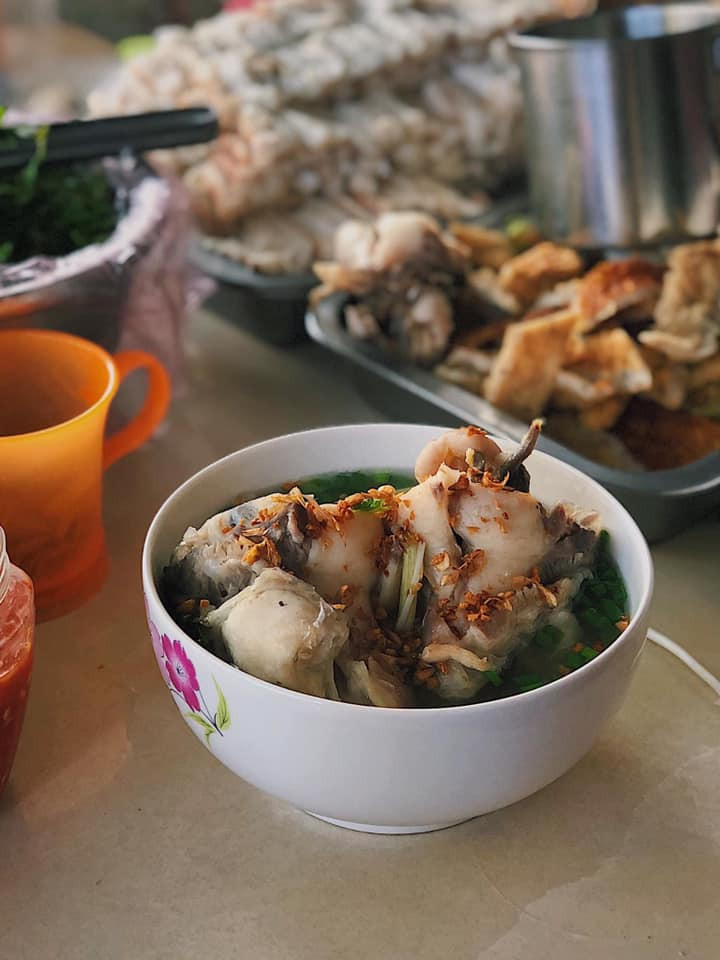 Nghe tiếng bấy lâu, nay mới có dịp thưởng thức tô bún cá “trong truyền thuyết” và thấy quả nhiên ngon xỉu. Tiệm đông lắm, khách ra vô tấp nập. Bạn chỉ cần đứng bên ngoài, nhìn tủ kiếng trưng thịt cá lóc xếp chồng, thố tôm lột vỏ đỏ tươi là muốn chảy nước miếng rồi. Nước dùng trong veo, ngọt thanh, cá lóc dai, cá chả chiên và tôm kho ăn rất đậm vị.