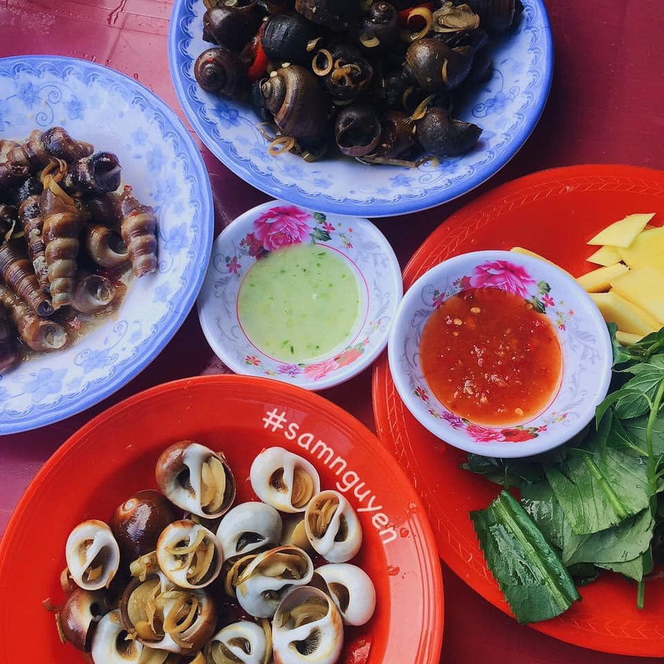 Theo kinh nghiệm của tớ thì khi ra Nha Trang bạn nên ăn ốc luộc hay hấp trước. Ốc Nha Trang khác ốc Sài Gòn đầu tiên là ở phần nước chấm. Nước chấm mắm gừng sền sệt, nước mắm xanh ăn kèm xoài chua chua ngọt ngọt và rau thơm. Ngon tuyệt cú mèo!
