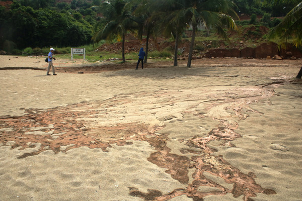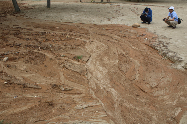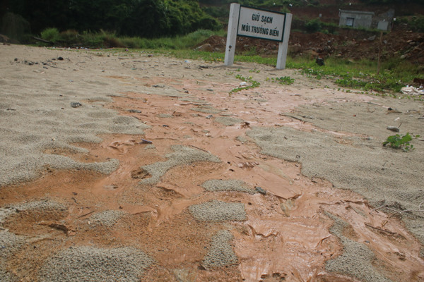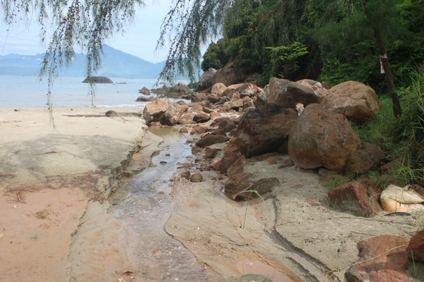 Ngay dưới khu vực chân núi, tình trạng đất, bùn đỏ chảy từ khu vực này xuống biển khá nhiều. Một vài vị trí bùn, đất đỏ thành dòng, chảy thẳng xuống biển. Sát khu vực chân núi, nhiều điểm đất đá xói lở, nham nhở.