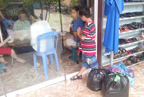 Cố nán lại nhìn bạn bè trước khi theo ông bà nội trở về nhà - Ảnh: Đức Tiến.