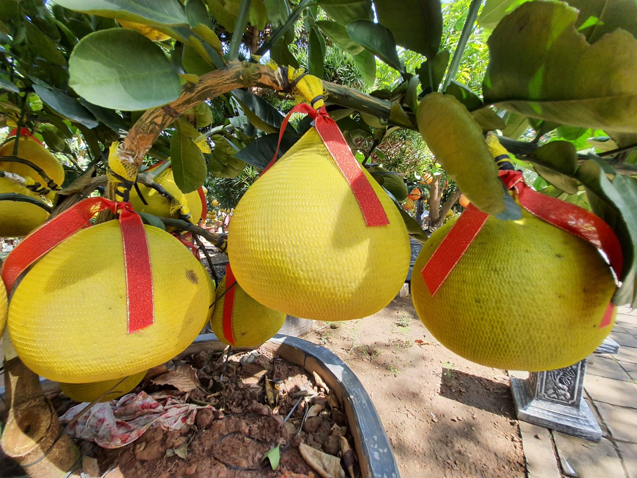 Khi bưởi vào TPHCM được bọc túi bóng, giấy rất cẩn trọng. “Tôi cùng thêm gần chục người nữa mất gần 1 tuần vừa tháo bọc túi bóng, giấy rồi bọc lại lưới, thắt nơ ruy băng đỏ để trang trí lại cây, nhìn bắt mắt, hợp với không khí ngày Tết”, chị Thảo chia sẻ.