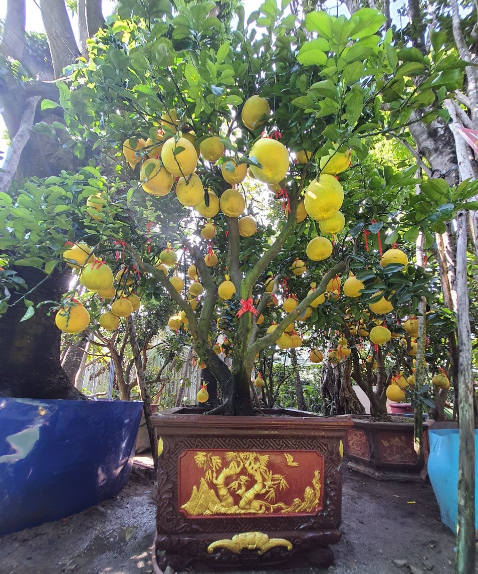 Ngày 4/1, ghi nhận của PV Tiền Phong, tại dọc đường Mai Chí Thọ, quận 2, TPHCM đã xuất hiện những chậu bưởi Diễn (đến từ Hưng Yên) được dùng để chơi Tết. Đặc điểm của bưởi Diễn là trái to, vàng và sum suê nhìn rất bắt mắt nên gây chú ý với người đi đường…