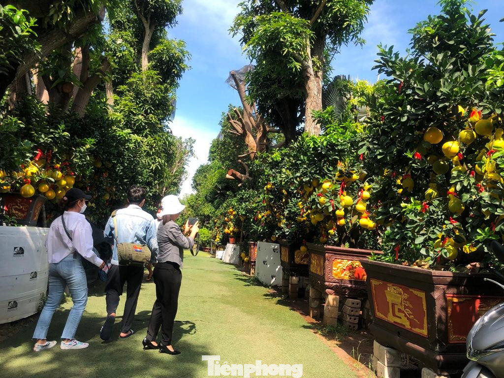 | Anh Phương, chủ vườn kiểng Hoàng Phương cho biết: "Dù bưởi mới về được ít ngày nhưng đã có khá nhiều khách đến xem cây, đặt hàng và gửi nhà vườn chăm sóc, gần Tết mới chở về nhà chơi Xuân". |