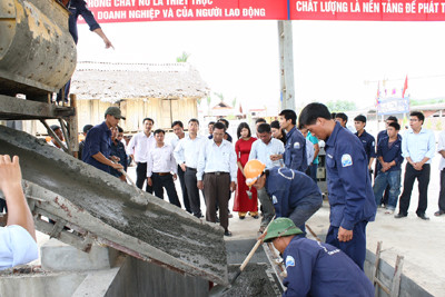 Cán bộ, nhân viên của Busadco chi nhánh miền Bắc đổ sản phẩm đầu tiên tại nhà máy Hà Nội.