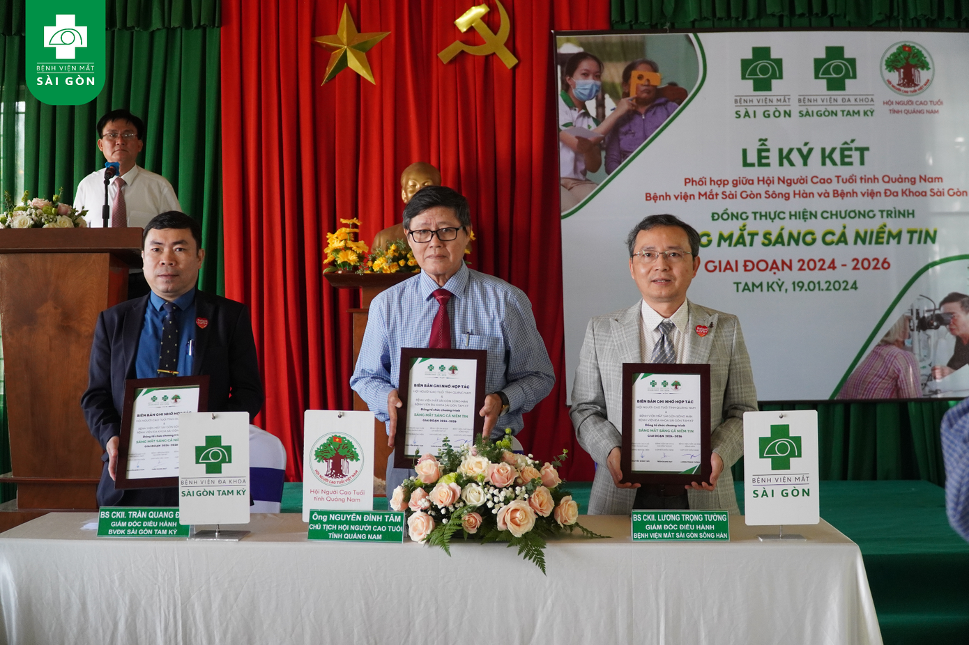 Lễ ký kết hợp tác chương trình “Sáng mắt sáng cả niềm tin” trong giai đoạn 2024 -2026 giữa Bệnh viện Mắt Sài Gòn Sông Hàn, Bệnh viện Đa Khoa Sài Gòn Tam Kỳ và Hội Người Cao Tuổi tỉnh Quảng Nam đã diễn ra thành công. Theo văn bản ký kết hợp tác, hai đơn vị sẽ cùng tổ chức các hoạt động vì cộng đồng như: khám và kiểm tra, tầm soát các bệnh mắt, phát thuốc miễn phí; tặng quà cho người dân thuộc diện hộ cận nghèo, có hoàn cảnh khó khăn trên địa bàn tỉnh Quảng Nam.