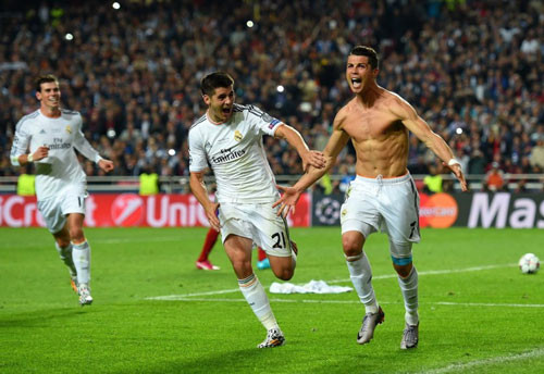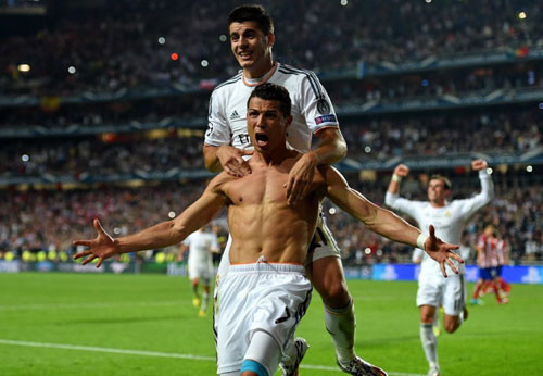 Sau khi ghi bàn thắng ấn định tỷ số 4-1 cho Real ở cuối hiệp phụ thứ 2, C. Ronaldo cởi áo thể hiện niềm vui tột cùng.