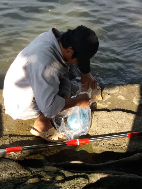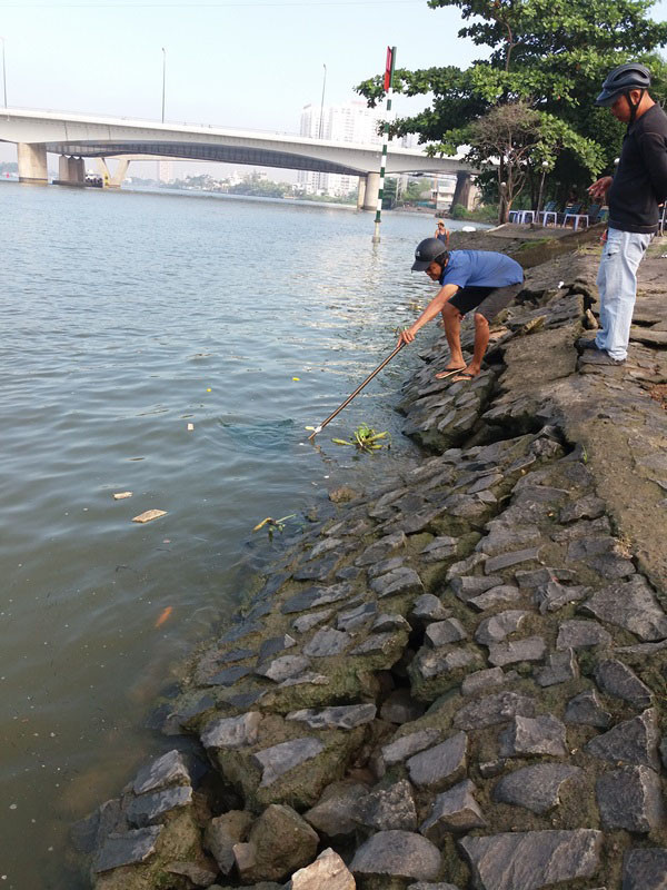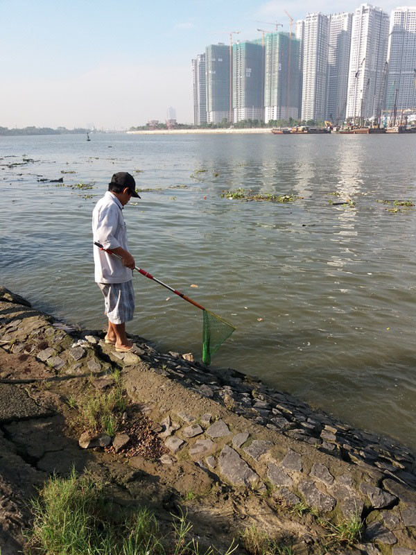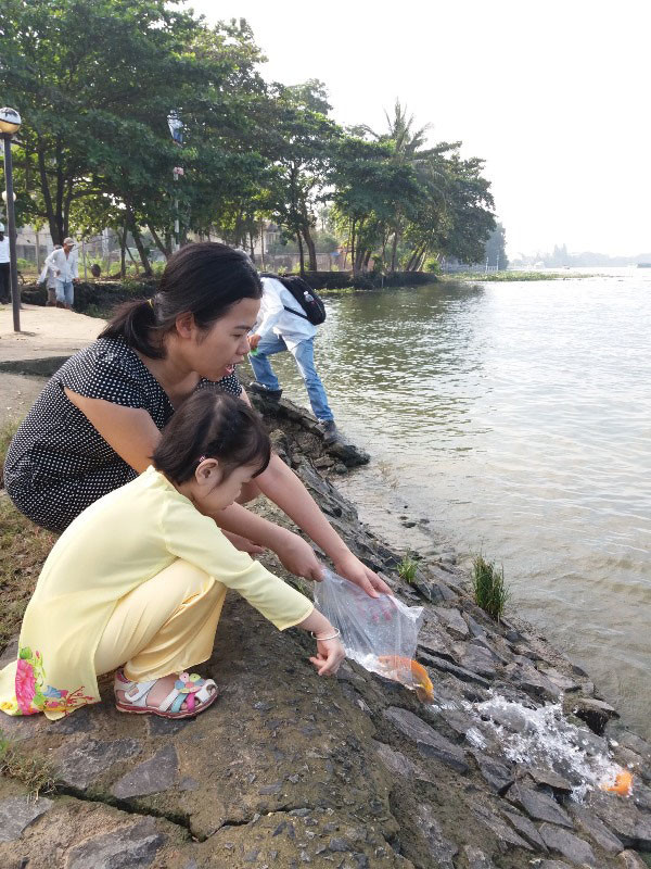 Ngay từ sáng sớm, ở khu vực chân cầu Sài Gòn đã có hàng chục người mang cá đến phóng sinh. Ông Hùng (52 tuổi, quận 2) cho biết : “Tôi chọn thả cá ở sông Sài Gòn vì nước sạch hơn ở các kênh”.
