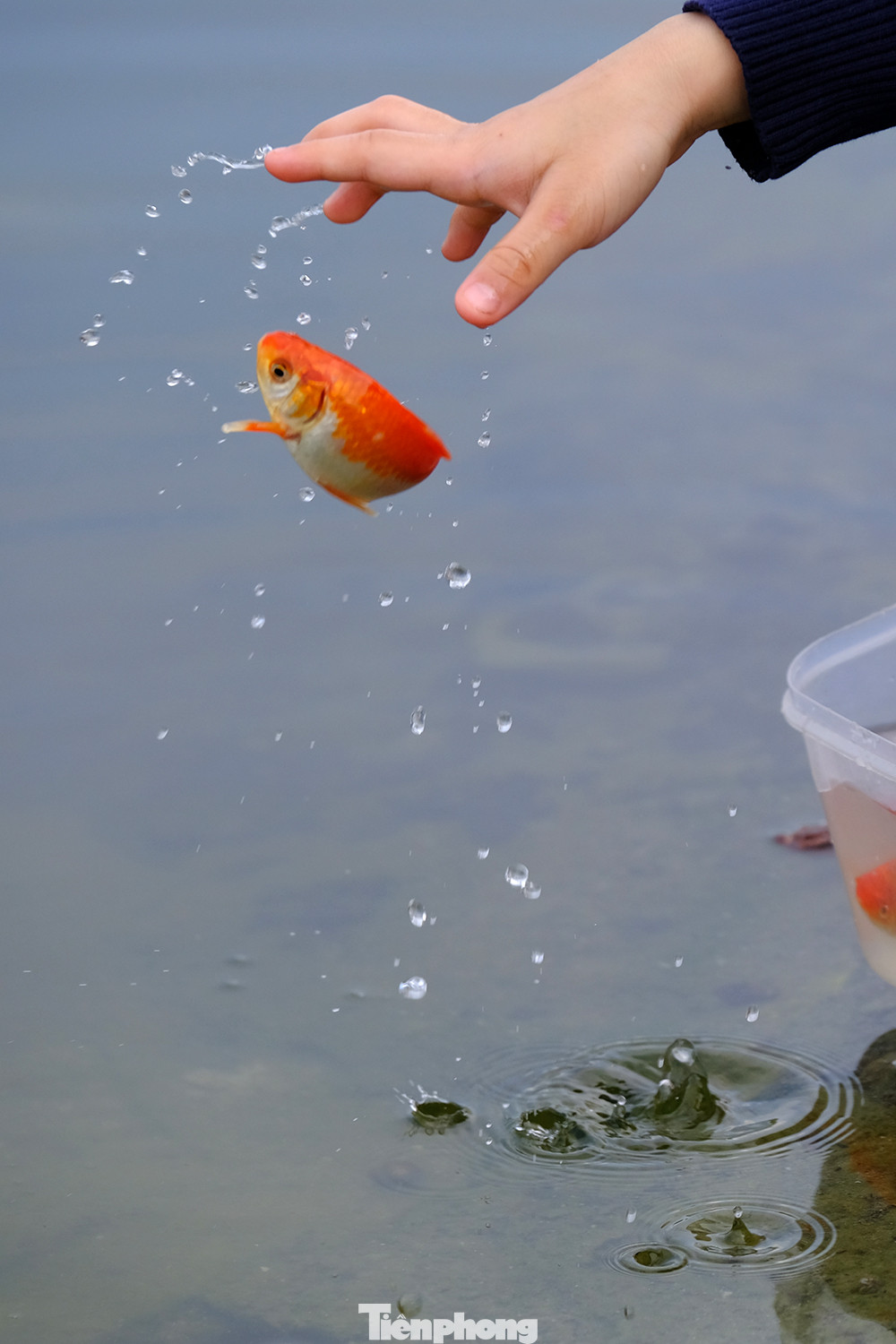 | Nhiều người chọn hồ là nơi thả cá chép vàng tiễn ông Công ông Táo về trời. |