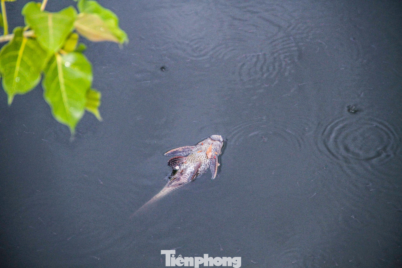 | Cá chết trong hồ đã phân hủy, gây mùi hôi thối. Ảnh: Trương Định |