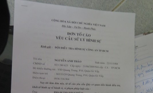 Trong đơn yêu cầu xử lý hình sự gửi công an TP.HCM bà Thảo nghi vấn, kẻ tấn công gia đình bà từ giữa năm 2013 đến nay là đối tượng tên K.