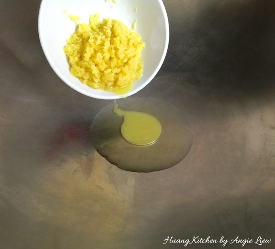 Đầu tiên cho dầu vào chảo cho nóng rồi cho gừng tươi vào đảo.