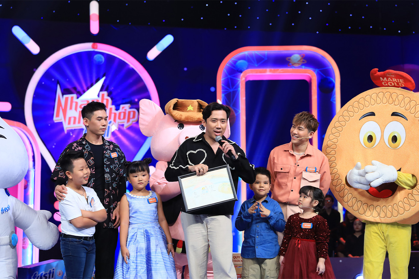 Thật ra đó chỉ là một câu nói đùa của Minh Khang, vì cậu bé rất yêu quý nam MC. Thậm chí, Minh Khang còn đặc biệt chuẩn bị một bức tranh do chính tay mình vẽ tặng vợ chồng Trấn Thành và Hari Won khiến nam MC không khỏi bất ngờ và phấn khích.