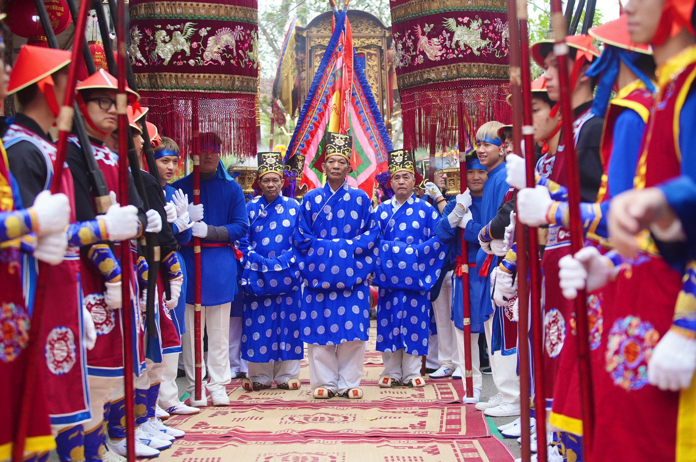 Khi kiệu Thánh đi qua người dân chiêm bái, cầu mong điều may mắn cho gia đình, làng xóm...