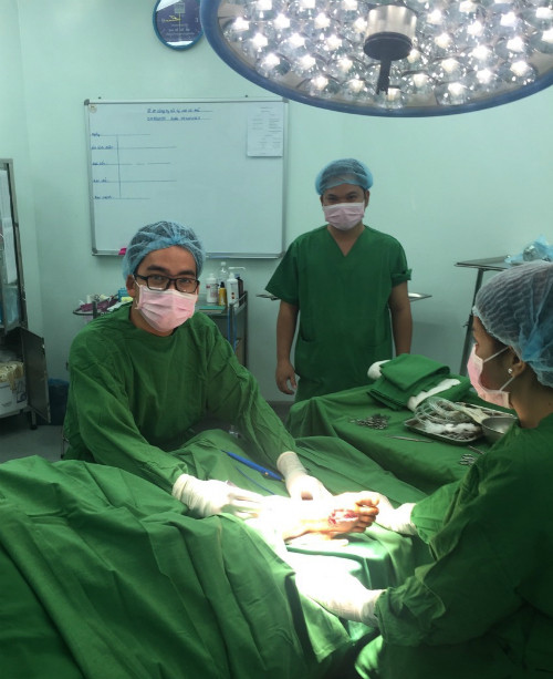 "Mải mê làm việc, mọi người quên cả thời khắc giao thừa đã qua từ lúc nào không hay", bác sĩ chuyên khoa 2 Nguyễn Tri Thức, giám đốc Bệnh viện Chợ Rẫy Phnom Penh chia sẻ. Sau vài tiếng phẫu thuật, tình trạng bệnh nhân đã tạm ổn và tiếp tục được theo dõi sát tại khoa hồi sức tích cực.