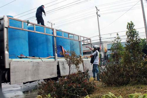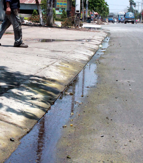 Một số người dân cho biết, trong lúc chờ cảnh sát tới thì tài xế tranh thủ xả rất nhiều a xít xuống đường cống thoát nước.