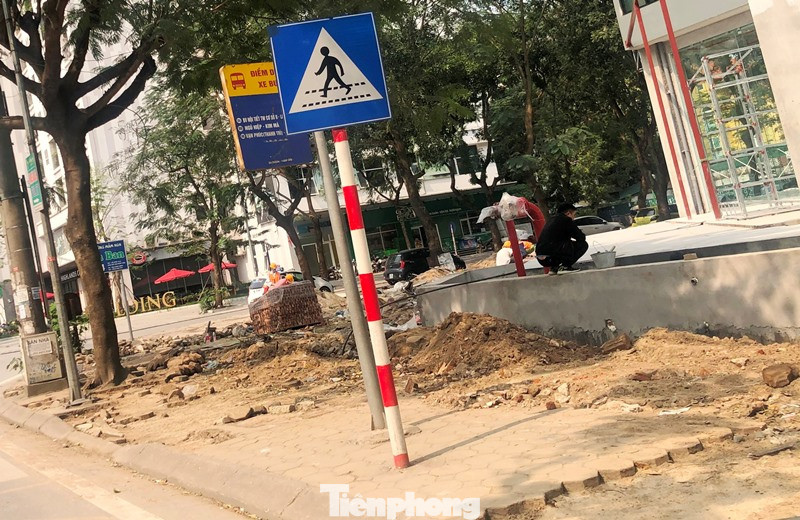 Tuy nhiên hiện cả nghìn mét vuông vỉa hè đoạn chạy qua tòa nhà Mitsubishi Việt Hồng - Hoàng Mai đang bị xới tung nhiều ngày nay.