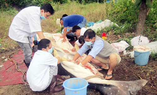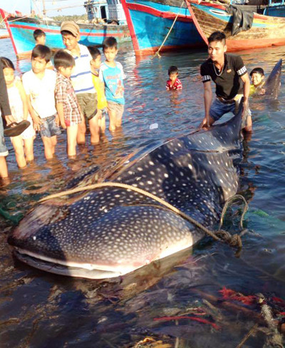 Ngày 28/1, chính quyền xã Vạn Thắng, huyện Vạn Ninh phối hợp chi cục Khai thác và bảo vệ nguồn lợi thủy sản tỉnh Khánh Hòa bàn giao xác cá nhám voi nặng hơn tấn cho Viện Hải dương học Nha Trang ướp xác, nghiên cứu khoa học.