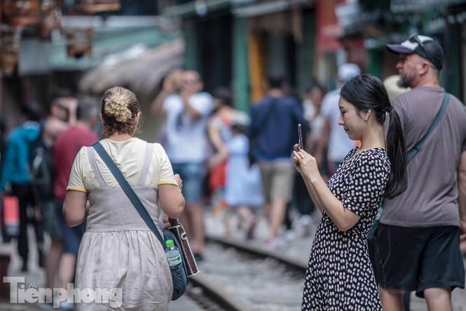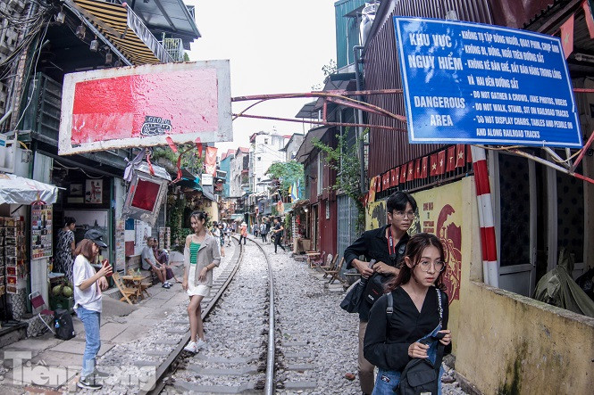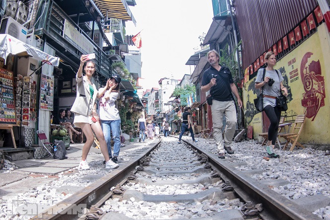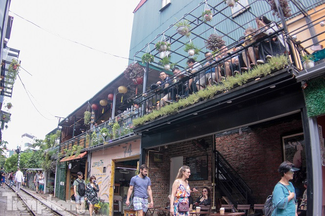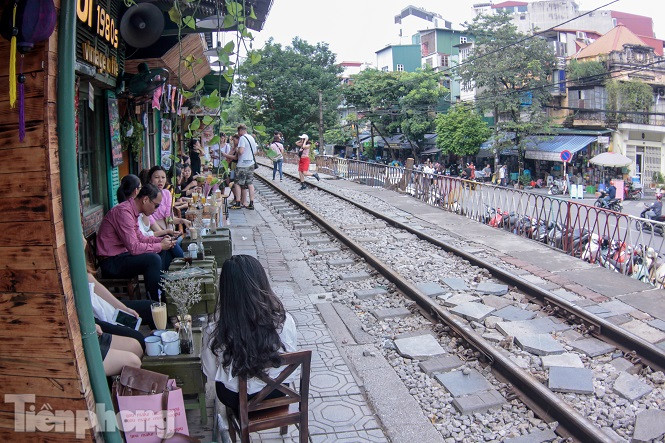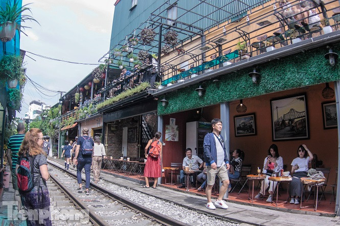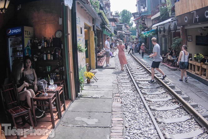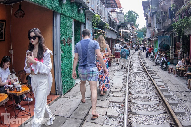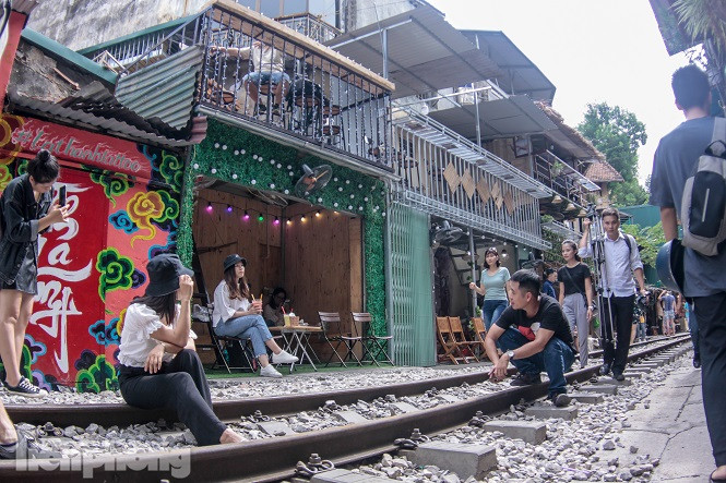 Đến đây, họ tham quan, chụp ảnh với đường tàu vẫn còn đang hoạt động. Lượng khách lớn khiến các quán xá, cà phê phát triển rầm rộ.