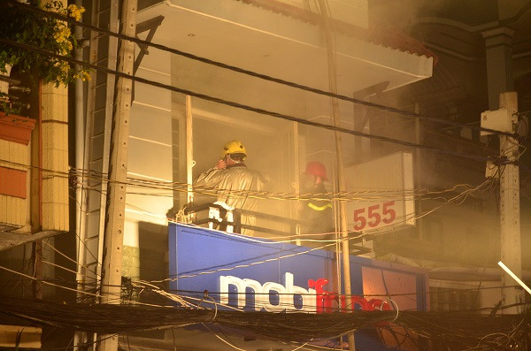 Cả phố hỗn loạn vì cửa hàng điện thoại 3 tầng bốc cháy