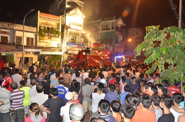 Khoảng 21h ngày 30/12, một vụ cháy lớn đã xảy ra tại căn nhà 3 tầng (chuyên kinh doanh điện thoại) nằm trên đường Phạm Văn Chí (phường 7, quận 6, TPHCM). Lính cứu hỏa nỗ lực dập tắt đám cháy