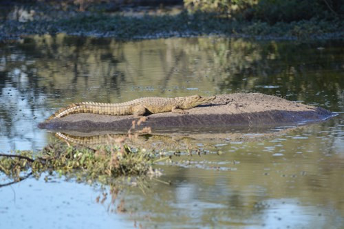 Khoảnh khắc hà mã thấy động và di chuyển thân mình khiến cá sấu con "chết đứng" vì sợ. Nó nằm im thin thít trên lưng hà mã và mong đợi mọi chuyện qua đi một cách êm đẹp.