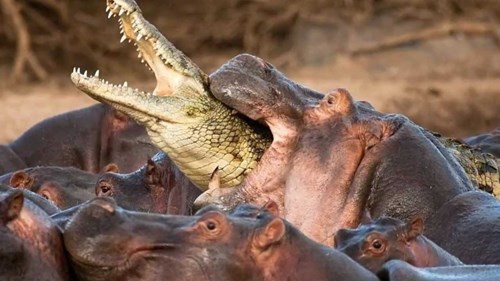 Việc nhầm lẫn lưng của hà mã là một tảng đá và ung dung nằm trên đó phơi nắng có thể là một nhầm lẫn chết người, khiến cá sấu phải trả giá bằng cả tính mạng.