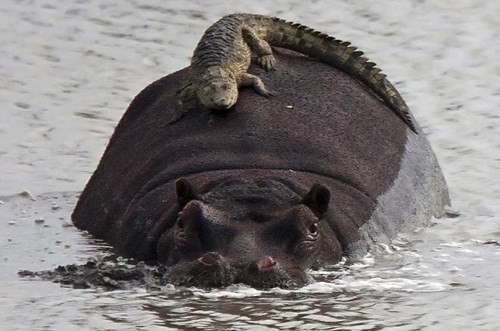 Trong thực tế, chỉ có những con cá sấu non mới có đủ can đảm và sự ngốc nghếch khi trèo lên lưng của hà mã khổng lồ.