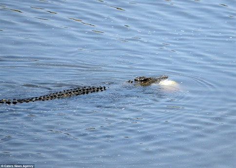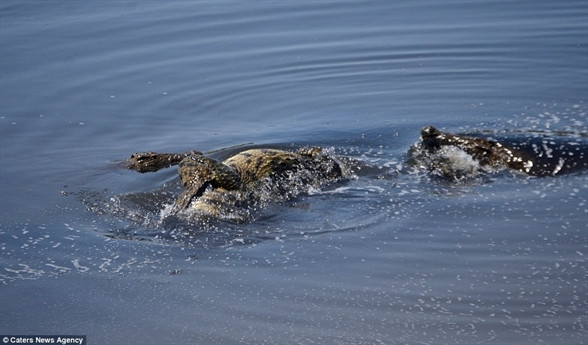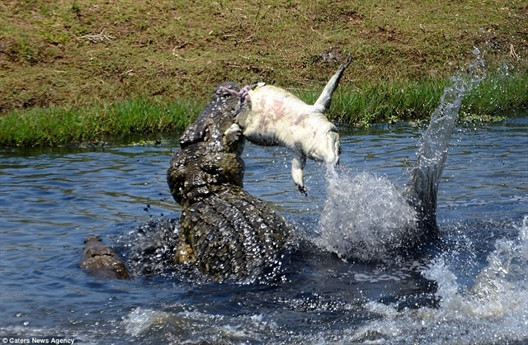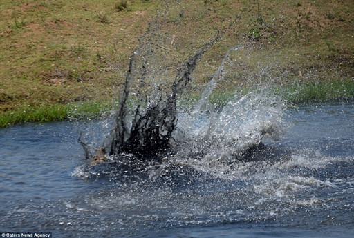 Nó cắn cổ và quăng quật con mồi đặc biệt của mình khiến cả vùng nước sôi sục.