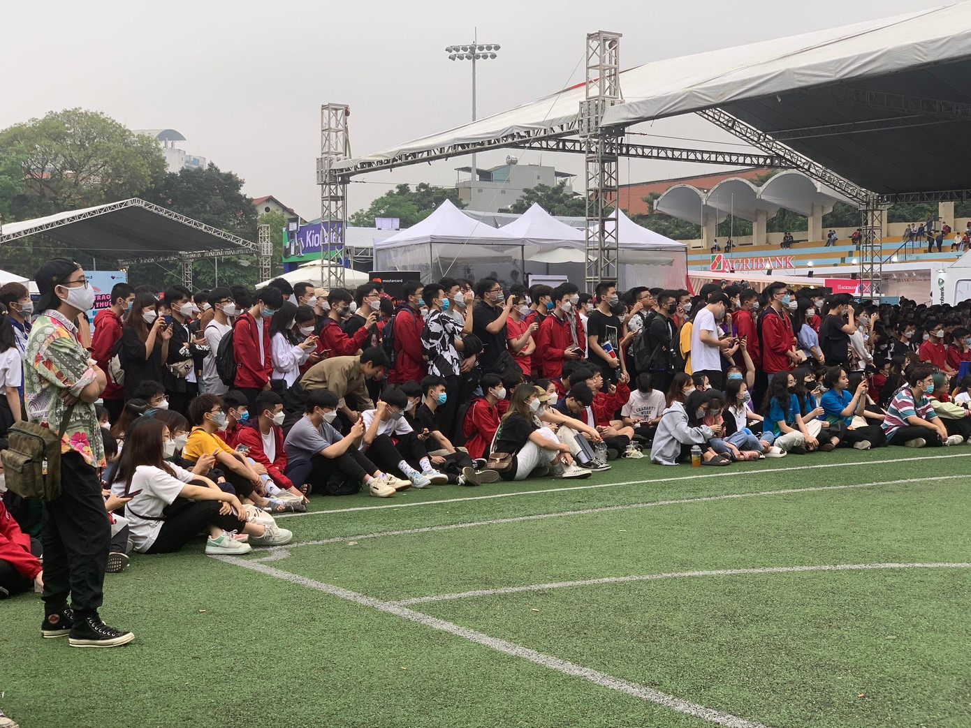 | Min tự tin thể hiện trước hàng nghìn các bạn trẻ tại SVĐ Bách Khoa. Ca sĩ chia sẻ bay từ TP.HCM ra và háo hức khi biểu diễn tại sân chơi cho các bạn sinh viên. |