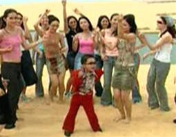 Với ca khúc Tây Du ký, em bé này được cho đóng vai Tề Thiên Đại Thánh, múa may cây gậy thần. Có hẳn một đội quân minh họa đóng vai yêu quái đeo mặt nạ chiến đấu với Tề Thiên nhí.