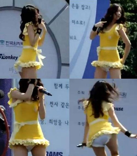 Những video clip biểu diễn của nhóm nhạc 5 thành viên này mới đây đã được đăng tải trên các trang mạng xã hội trực tuyến. Trong clip đó, các cô gái tuổi teen diện bộ đầm màu vàng ngắn cũn cỡn, nhảy múa tưng bừng và hồn nhiên để lộ nội y.
