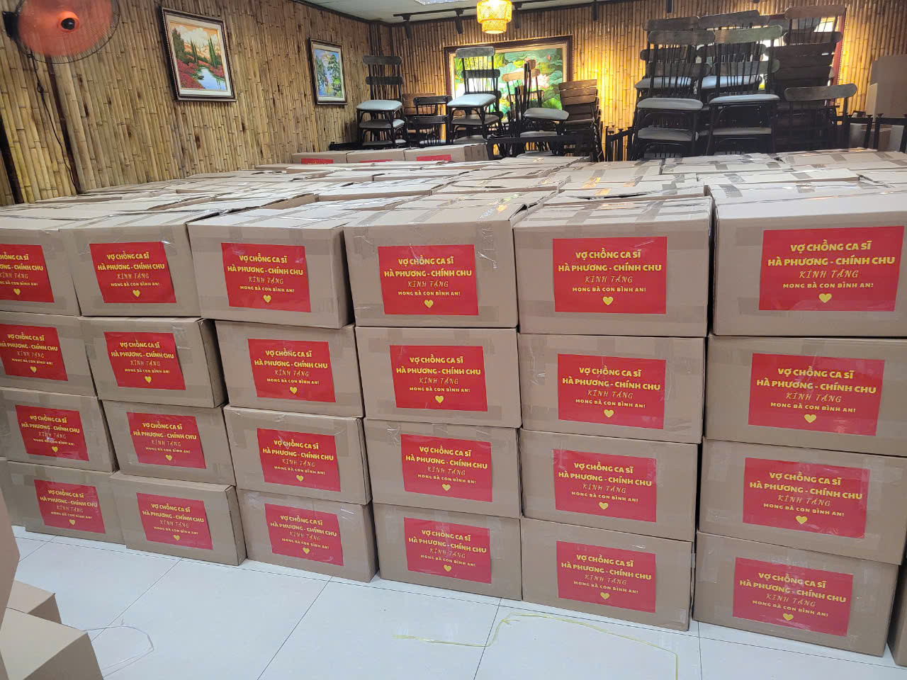 Ngoài ra, Hà Phương cũng luôn dặn dò ê kíp phải gói quà cẩn thận, thể hiện sự tôn trọng, không được làm thất thoát hay méo mó trước khi trao đến tay người nhận. Vợ chồng ca sĩ Hà Phương và Chính Chu mong cầu bình an sớm đến với đồng bào.