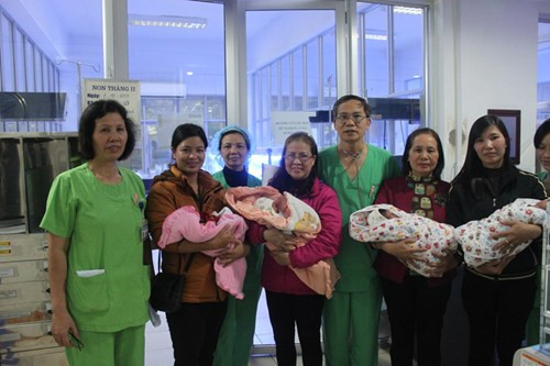 Chị Hoa, mẹ của 4 cháu bé sinh tư này sinh năm 1980, được thụ tinh trong ống nghiệm tại một cơ sở điều trị hiếm muộn tại Hà Nội. Chị Hoa đã vào bệnh viện từ khi thai còn nhỏ để các y bác sĩ tiện theo dõi và chăm sóc. Các y bác sĩ quyết định mổ đẻ sớm cho chị Hoa, khi thai được 33 tuần tuổi vì nếu để tuổi thai lâu hơn có thể nguy hiểm hơn cho cả mẹ và các con.