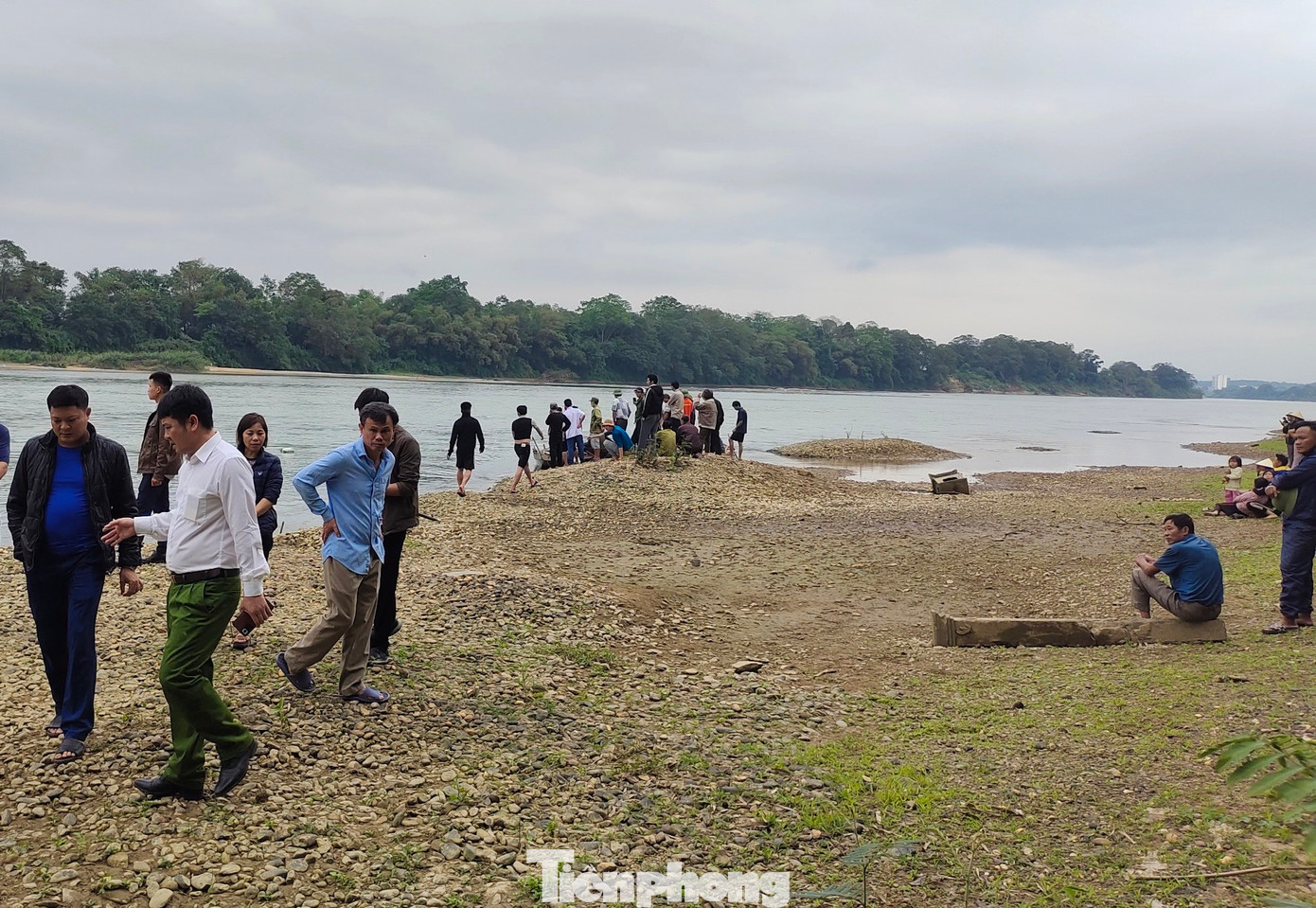 | Đêm 3/2, rất đông lực lượng cơ quan chức năng và người dân tập trung trên bờ để tìm kiếm hai cháu bé. |