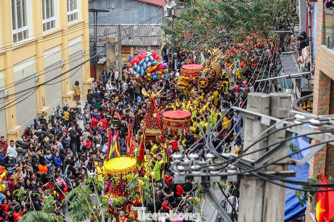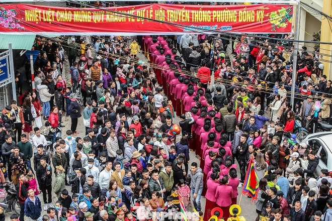 Hàng nghìn du khách thập phương đổ về lễ hội rước pháo tại làng Đồng Kỵ.