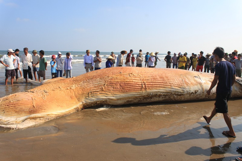 Cán bộ và nhân dân địa phương đã đưa xác cá voi lên bờ, xử lý ô nhiễm môi trường và chôn cất theo tập quán của địa phương.