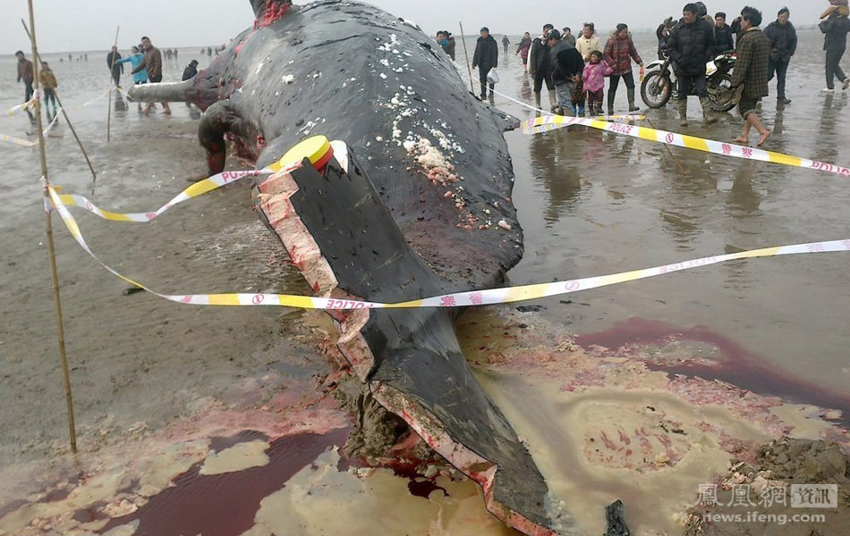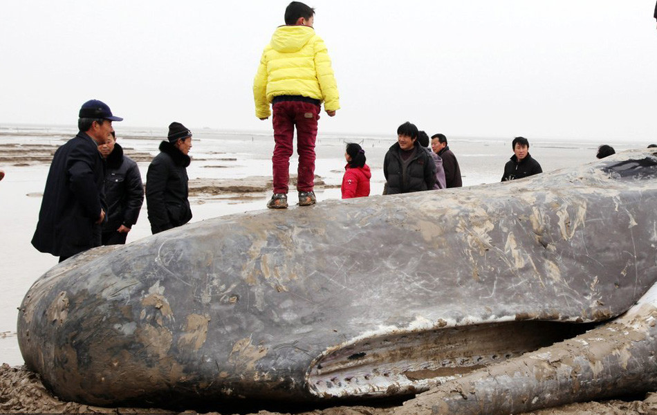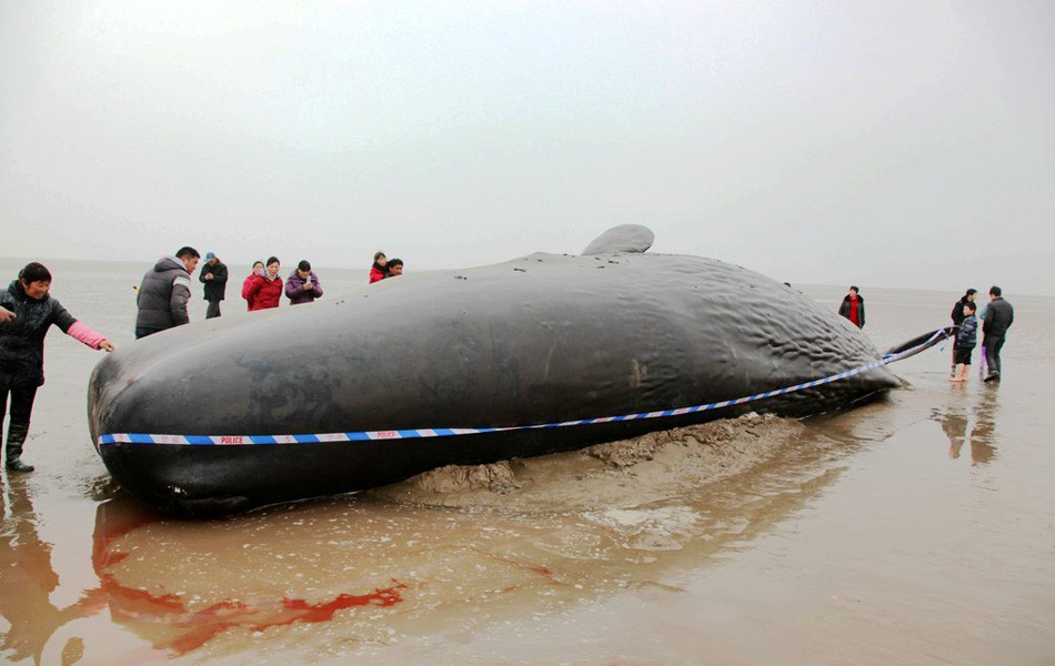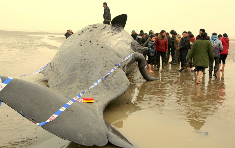 TPO - Cuối tuần qua, bốn con cá voi nhà táng (dài khoảng 20m và nặng 30 tấn) bị mắc kẹt ở bờ biển Hoàng Hải, huyện Diêm Thành, tỉnh Giang Tô, Trung Quốc.