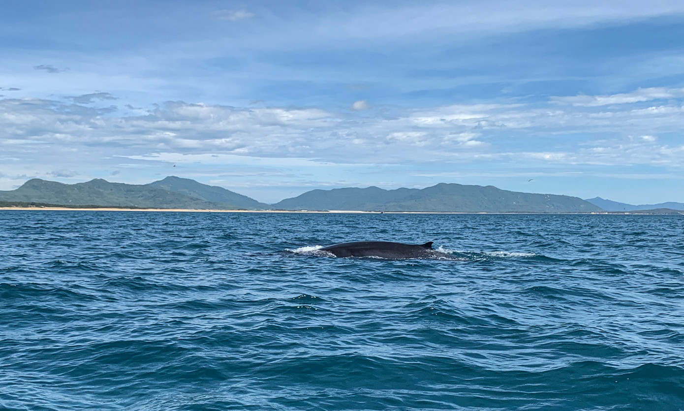 Ngày 2/7, anh Trần Văn Tài (SN 1988), người dẫn tour du lịch cho biết, vừa ghi lại hình ảnh hai cá voi một lớn một bé săn mồi ở vùng biển Đề Gi - Vũng Bồi, huyện Phù Cát (Bình Định). Thời điểm anh ghi nhận được, một con có chiều dài ước chừng khoảng 15 - 16m, con còn lại có chiều dài 10 - 12 m, hai con cá bơi gần nhau.