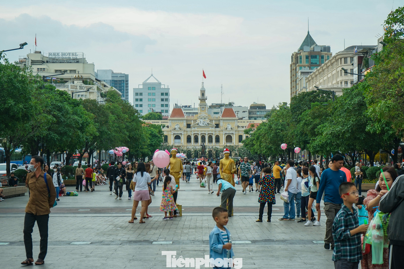 | Cùng thời điểm, phố đi bộ Nguyễn Huệ (quận 1) cũng nhộn nhịp không kém. Khá đông các bạn trẻ diện áo ấm xuống phố. Đây cũng là dịp các cặp đôi, gia đình cùng nhau tận hưởng không khí lạnh hiếm có từ đầu năm đến giờ. |