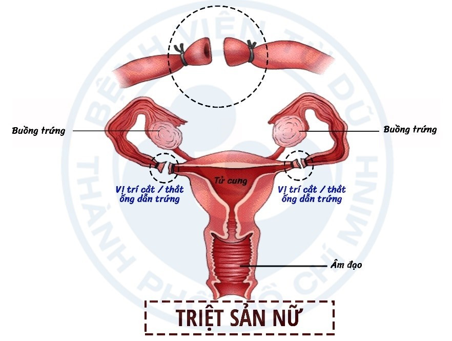 Đây là phương pháp thắt ống dẫn trứng (hoặc ống dẫn tinh), một dạng tiểu phẫu giúp chặn các ống dẫn trứng đưa trứng vào tử cung. Triệt sản nữ bằng phương pháp thắt và cắt vòi tử cung là một phẫu thuật làm gián đoạn vòi tử cung, ngăn không cho tinh trùng gặp noãn để thực hiện thụ tinh.