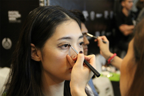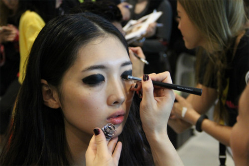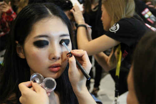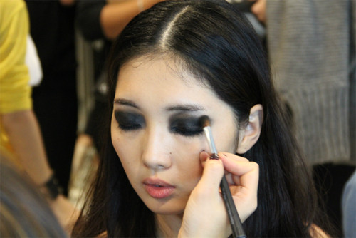 Tán phấn mắt màu xám lên sát phía chân mày để tạo hiệu ứng đôi mắt to, rộng hơn.