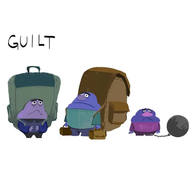 Tội Lỗi là một trong những cảm xúc được phác hoạ khá rõ nét trong các bản thảo của Inside Out 2. Cảm xúc này được thể hiện dưới hình dạng một anh chàng phải đeo trên lưng một chiếc ba lô lớn, đôi lúc lại là dây xích. Cảm xúc này được xem là một nhân tố quan trọng trong câu chuyện trưởng thành của Riley. Tuy nhiên, các nhà làm phim sợ rằng cảm xúc này sẽ khiến câu chuyện phim trở nên phức tạp, họ đã quyết định không đưa Tội Lỗi vào kịch bản chính.