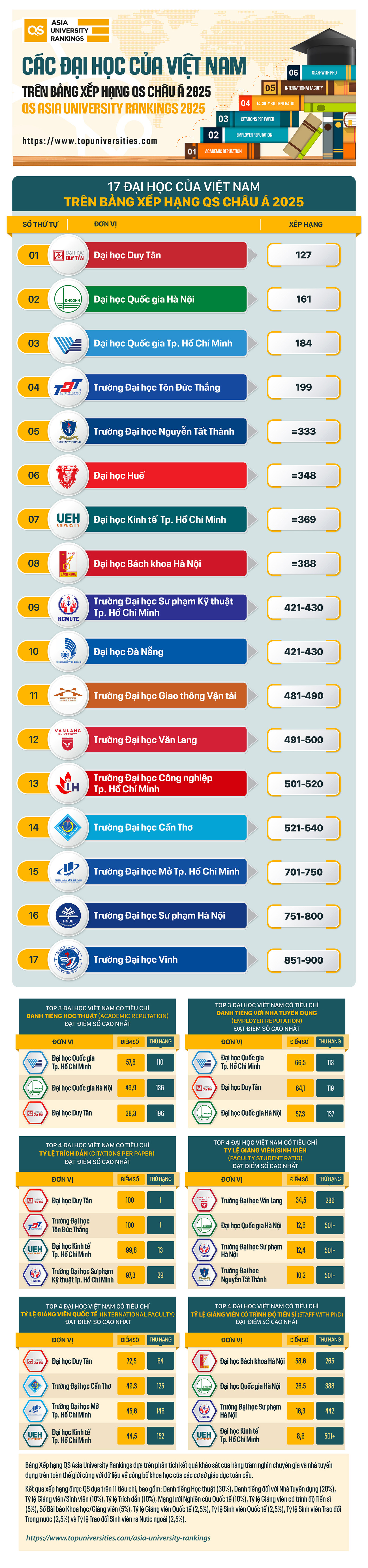 17 trường đại học của Việt Nam trên Bảng xếp hạng QS Châu Á 2025